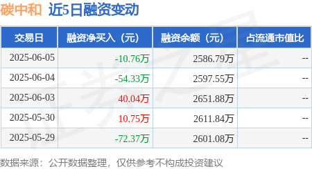 本站消息,6月5日,碳中和(159790)融资买入227.18万元,融资偿还237.94万元,融资净卖出10.76万元,融资余额2586.79万元。